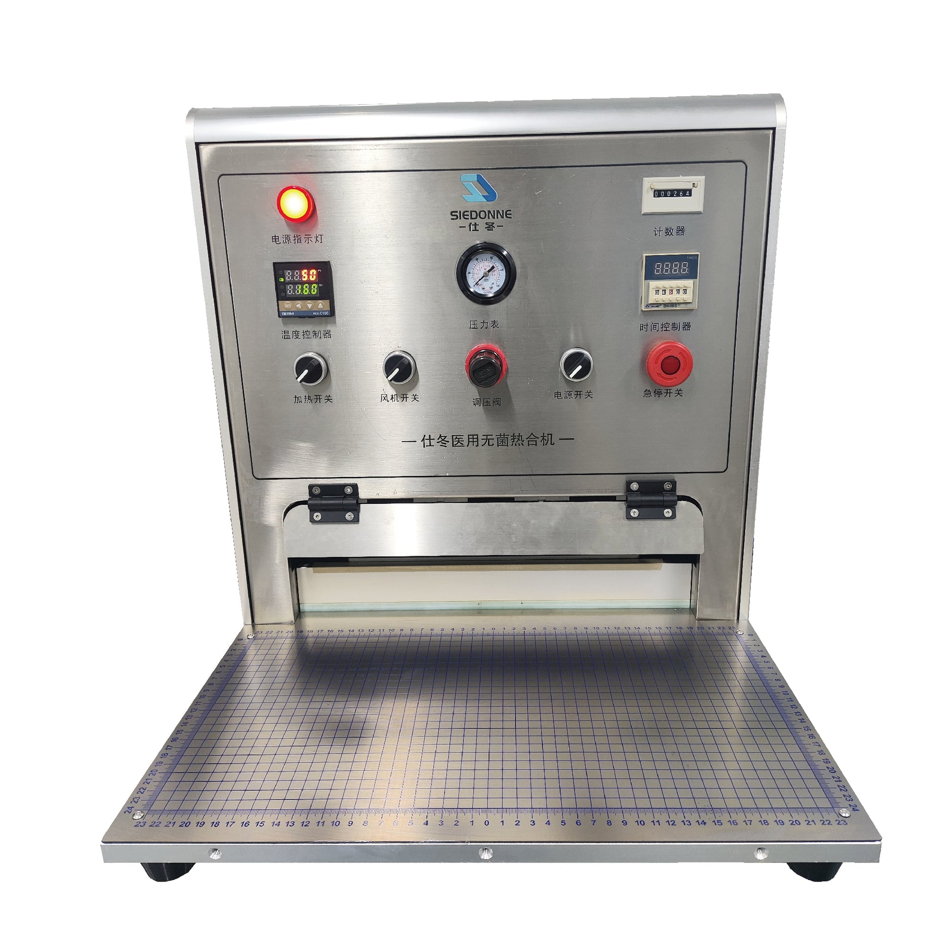 SD21C Desktop Medical Pouch Sealing Machine is designed for heat sealing of medical pouches, aluminum foil bags, vacuum bags, and other materials. It is ideal for packaging medical, lab, and pharmaceutical products where space is limited, yet high performance and flexibility are required. The precise temperature control module ensures reliable and consistent sealing, while the user-friendly mechanical interface allows high-accuracy process parameter setting and retention. The heat sealing temperature is verifiable and adjustable, complying with relevant medical standards.