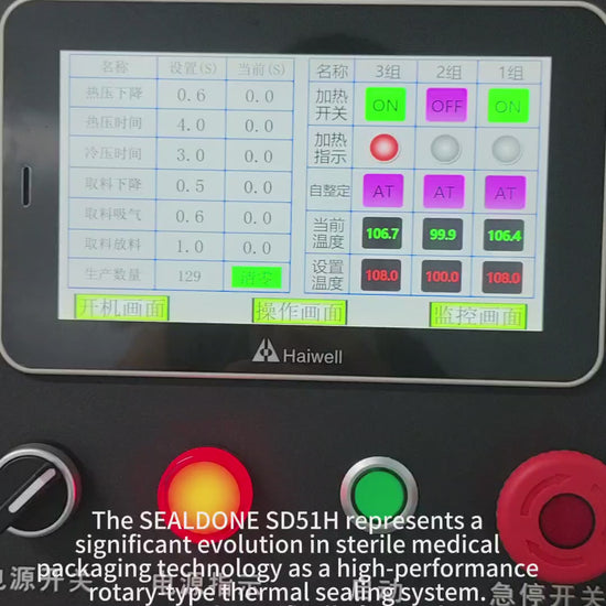 SD51H heat sealer is perfect for packaging medical products with high speed. Its temperature control module guarantees both reliable and consistent sealing, while the user-friendly touch screen and high accuracy maintain process parameters between seals.Can add a variety of functions, such as cooling, labeling, intelligent detection, automatic place blisters and DuPont paper, both of which adopt SEALDONE patented temperature control module to ensure sealing quality.Validatable and calibratable for ISO 11607 and CE compliance.